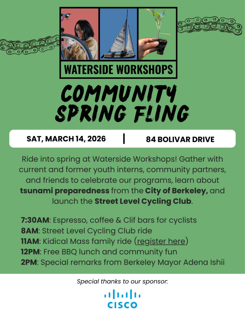 Ride into spring with Waterside! Gather with current and former youth interns, community partners, and friends to celebrate our programs, learn about tsunami preparedness from the City of Berkeley, and launch the Street Level Cycling Club.